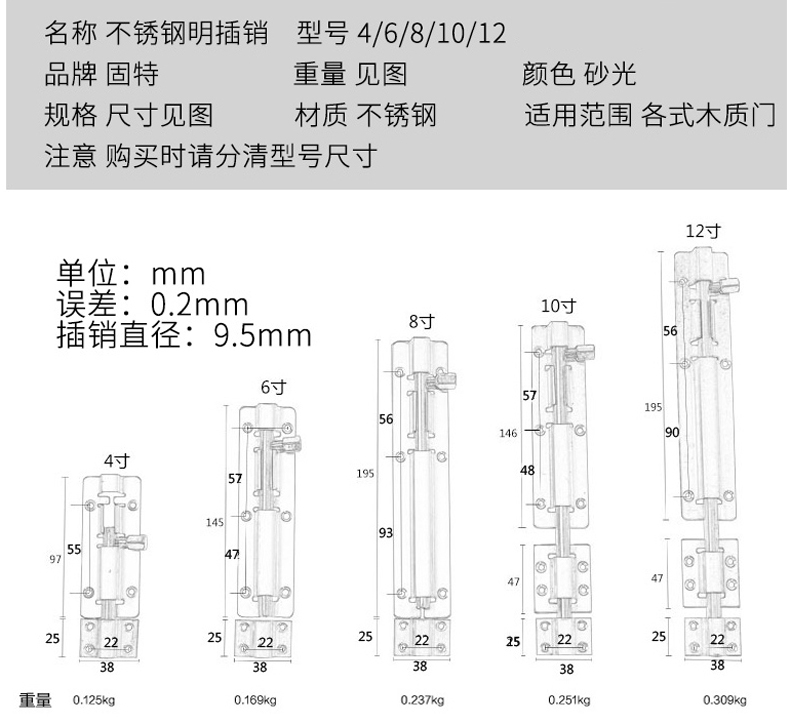 艾逊订货号:G1066502 原始型号:固特 明插销,不锈钢/本色,4寸 品牌:GUTE/固特 品牌所属地:中国