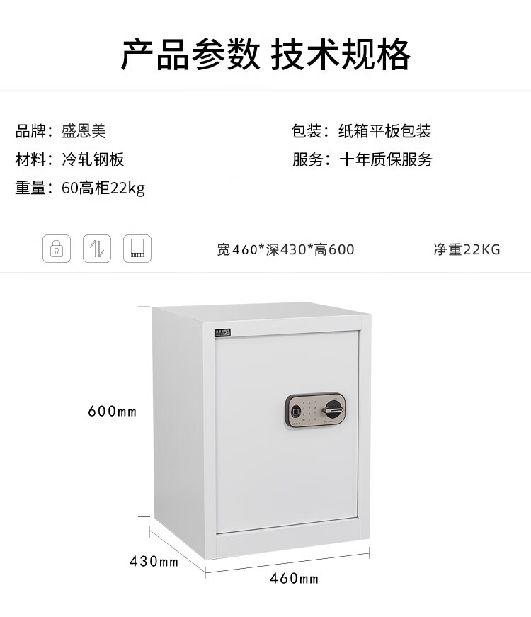 艾逊订货号:K1026246 原始型号:盛恩美 小型密码锁柜 保险柜 宽460*深430*高600 品牌:盛恩美 品牌所属地:中国