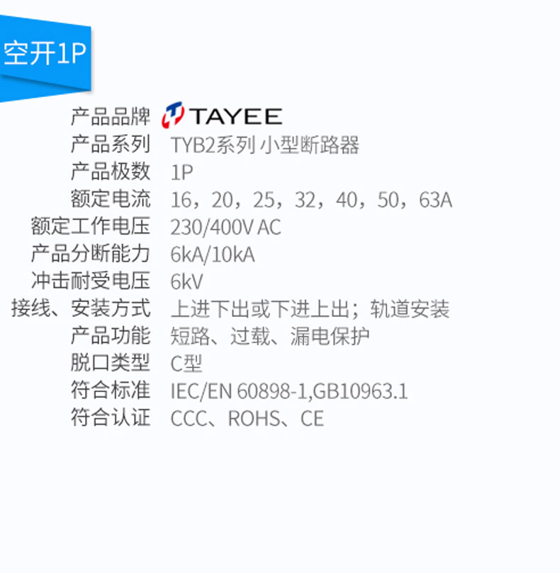 天逸TAYEE 微型断路器 TYB2N 1P 63A C型 |