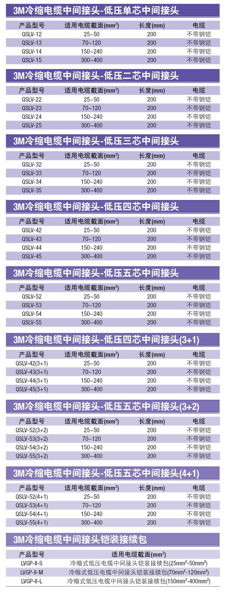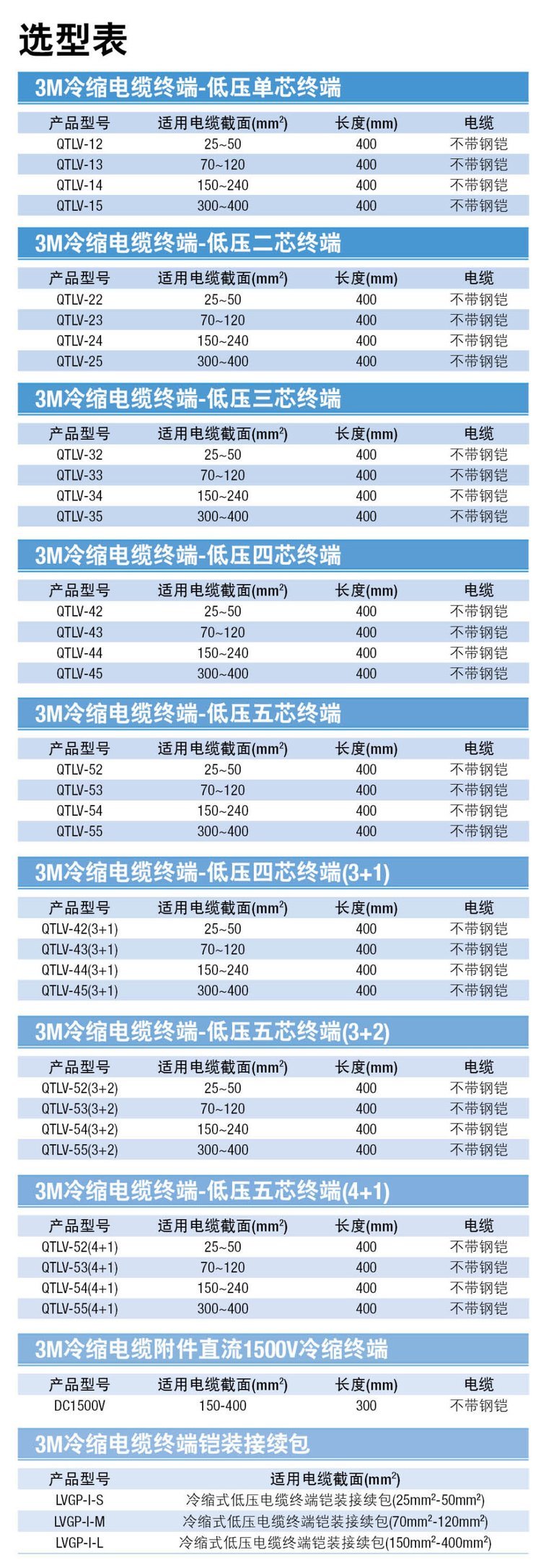 3M 冷缩电缆终端-0.6/1kV 四芯终端(25mm2-50mm2) ,QTLV-42,不含接线金具 |