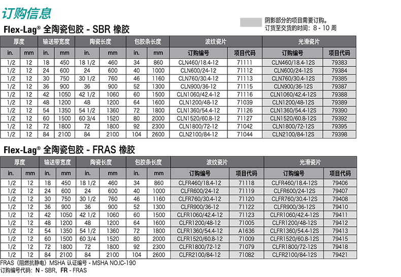 Flexco的输送设备配件孚乐率Flexco陶瓷包胶/B=800mmTHK=15mmFlex-LagFull-80%