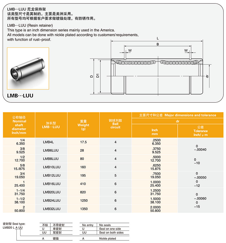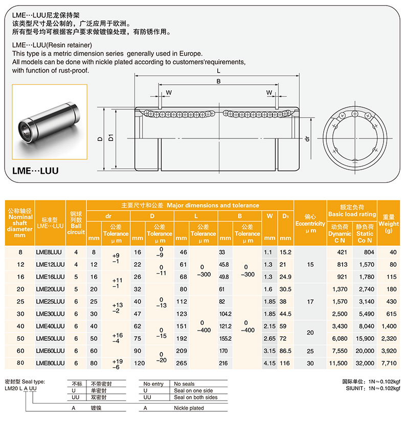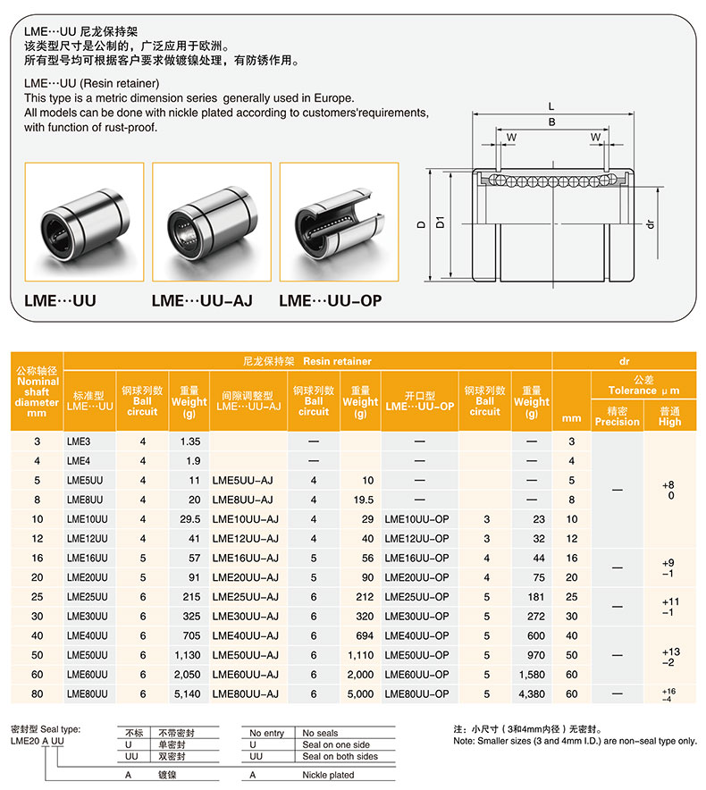 艾逊订货号:L1041050 原始型号:美亚特 LME20UU 品牌:MYT/美亚特 品牌所属地:中国
