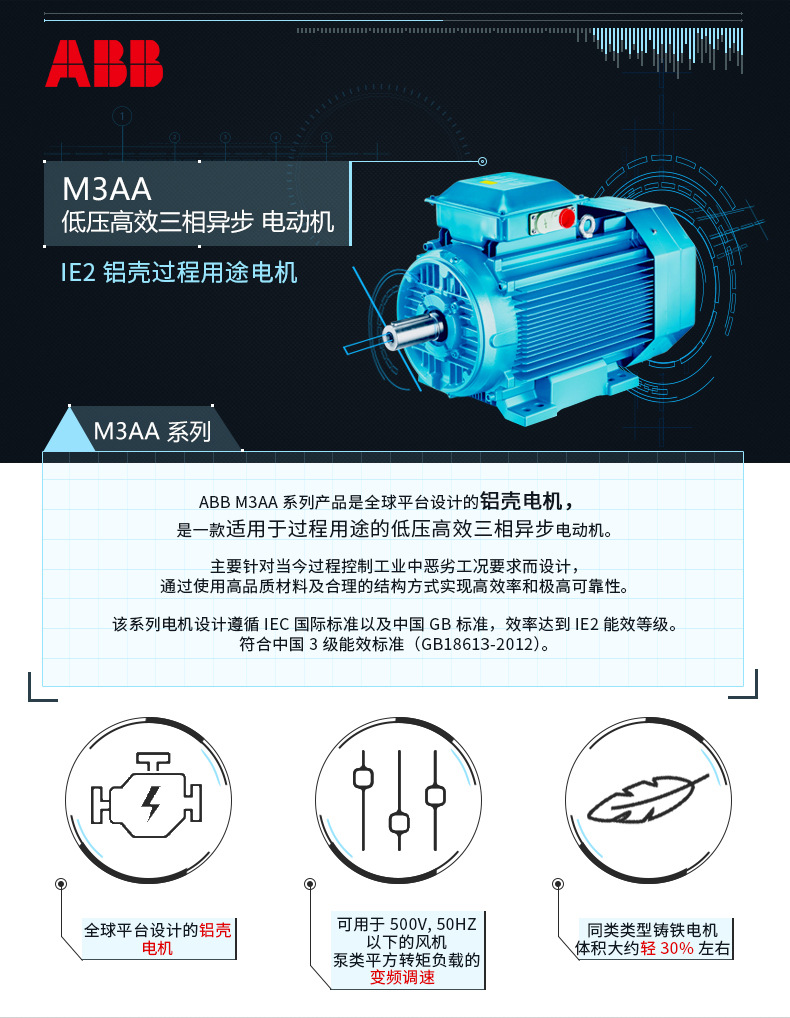 ABB 1.5KW低压交流铝壳电机,2P,B3,M3AA 90L2 |