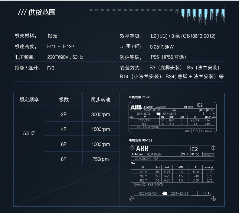 ABB 0.75KW低压交流铝壳电机,2P,B5,M3AA 80B2 |