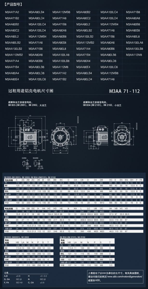 ABB 0.55KW低压交流铝壳电机,2P,B5,M3AA 71B2 |