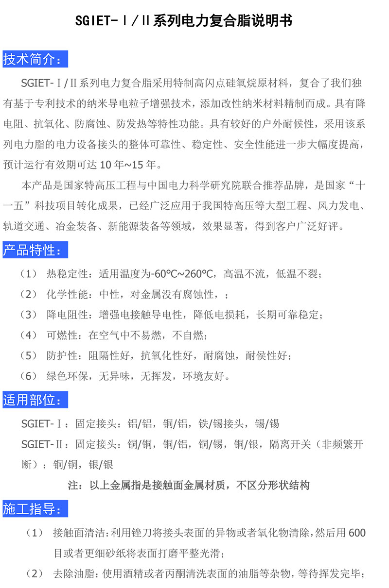 国网互联 增强系列电力复合脂(导电膏) SGIET-IIX(熔合型) 250g/盒 |