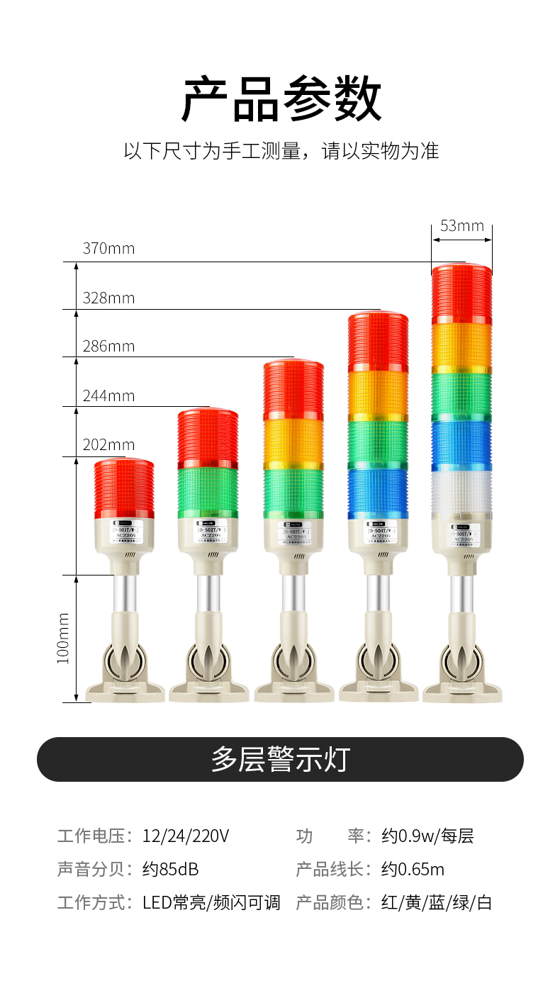 艾逊订货号:E1095948 原始型号:警示灯CISN多层警示灯JD-504T/W-J4层 品牌:CISN 品牌所属地:中国