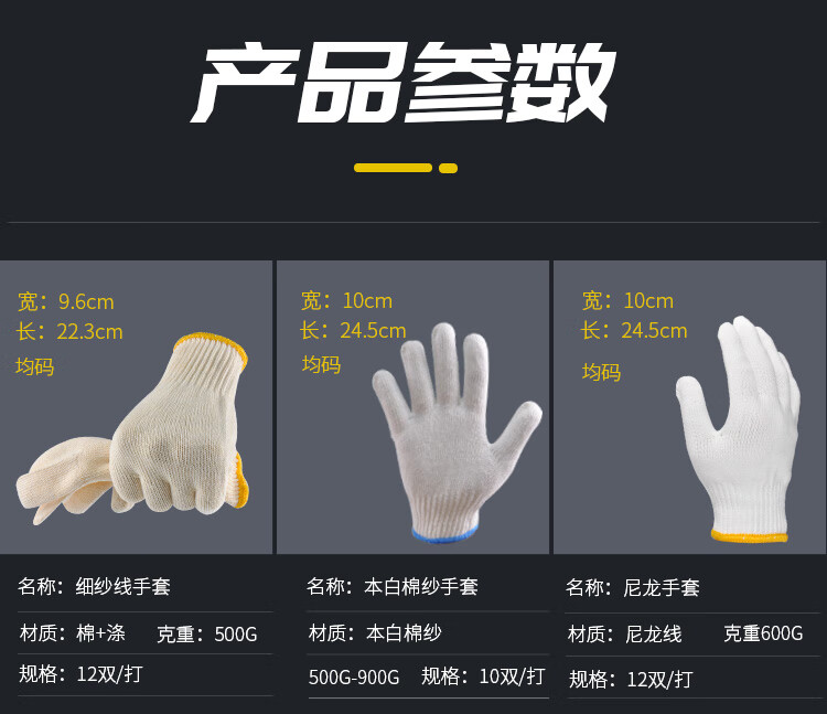 艾逊订货号:J1026474 原始型号:劳保手套棉线12双/包 品牌:other/其他 品牌所属地:中国