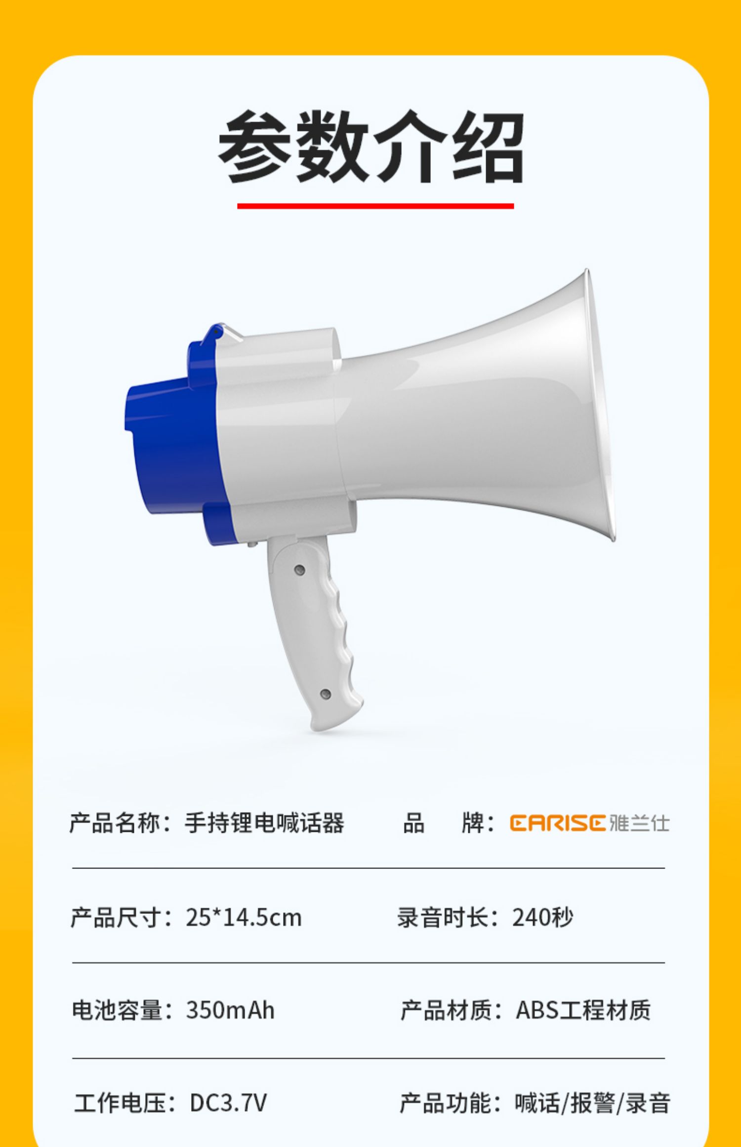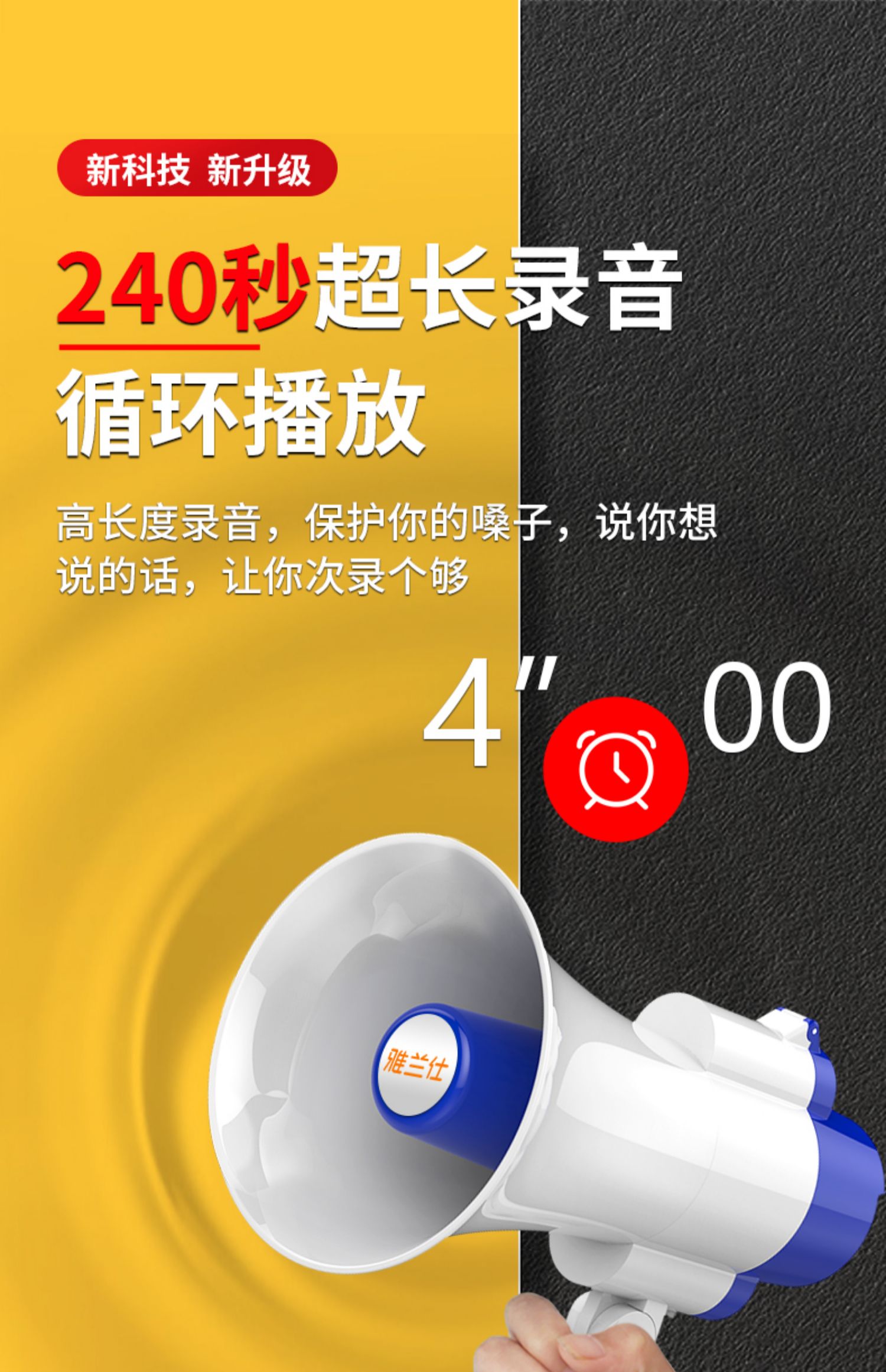 艾逊订货号:K1026348 原始型号:录音喇叭扬声器蓝牙喊话器扩音神器 品牌:雅兰仕 品牌所属地:中国