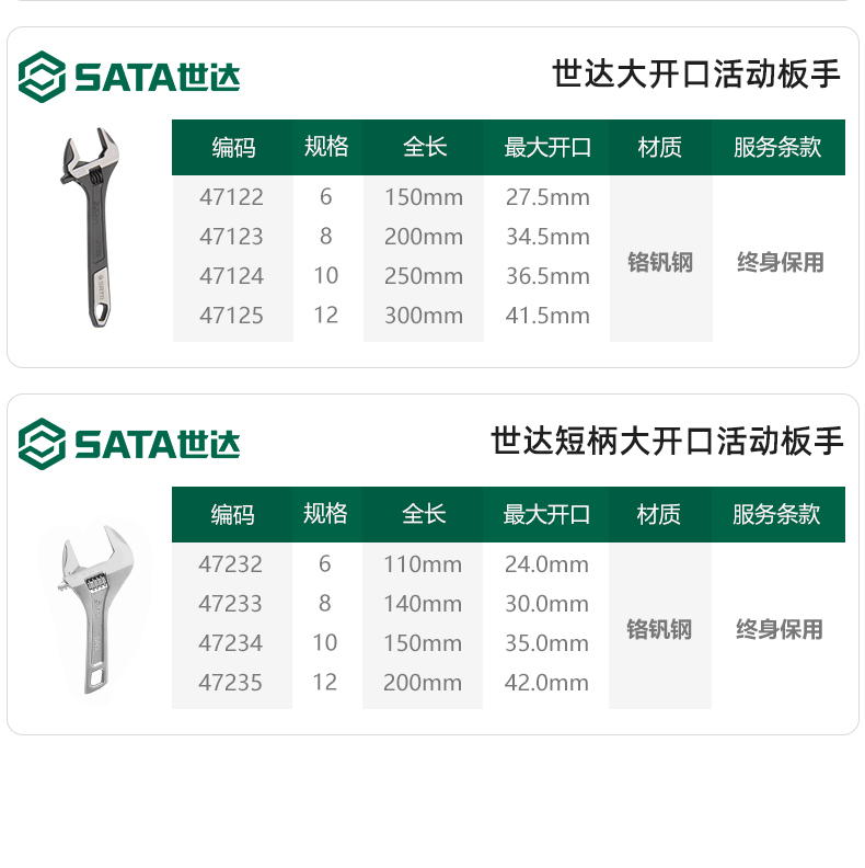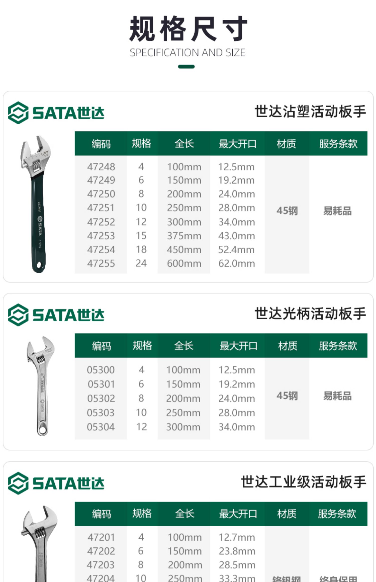 SATA/世达的扳手活动扳手世达世达,长柄34mm