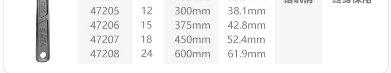 艾逊订货号:D1042479 原始型号:活动扳手世达世达,长柄34mm 品牌:SATA/世达 品牌所属地:中国