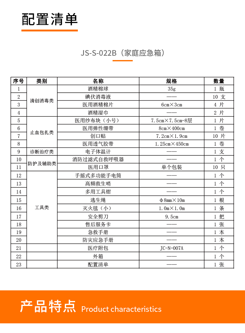 CROR/科洛的应急包科洛(CROR)JS-S-022B家庭应急箱