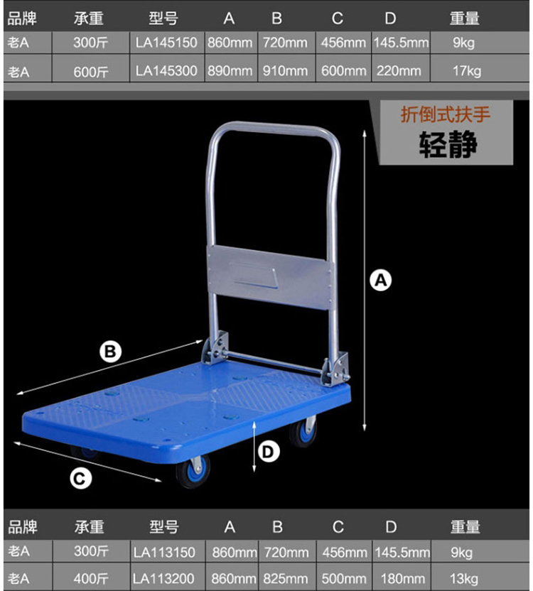 LAOA/老A的平板推车老ALAOALA145150折叠平板车货运平板手推车工具车托运车微承重300斤