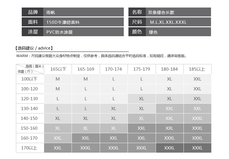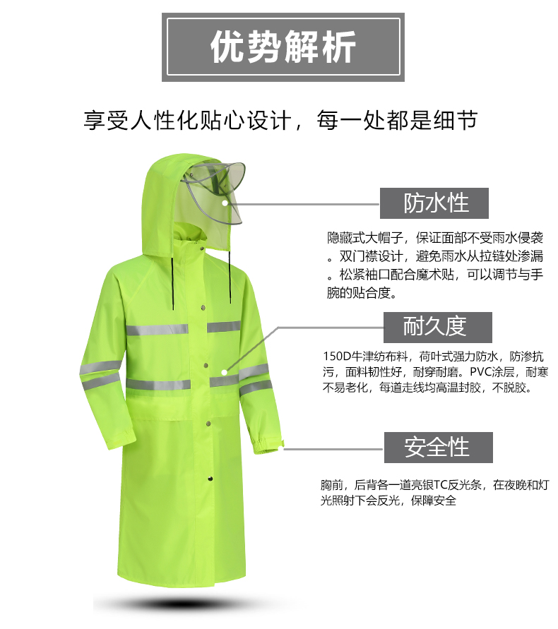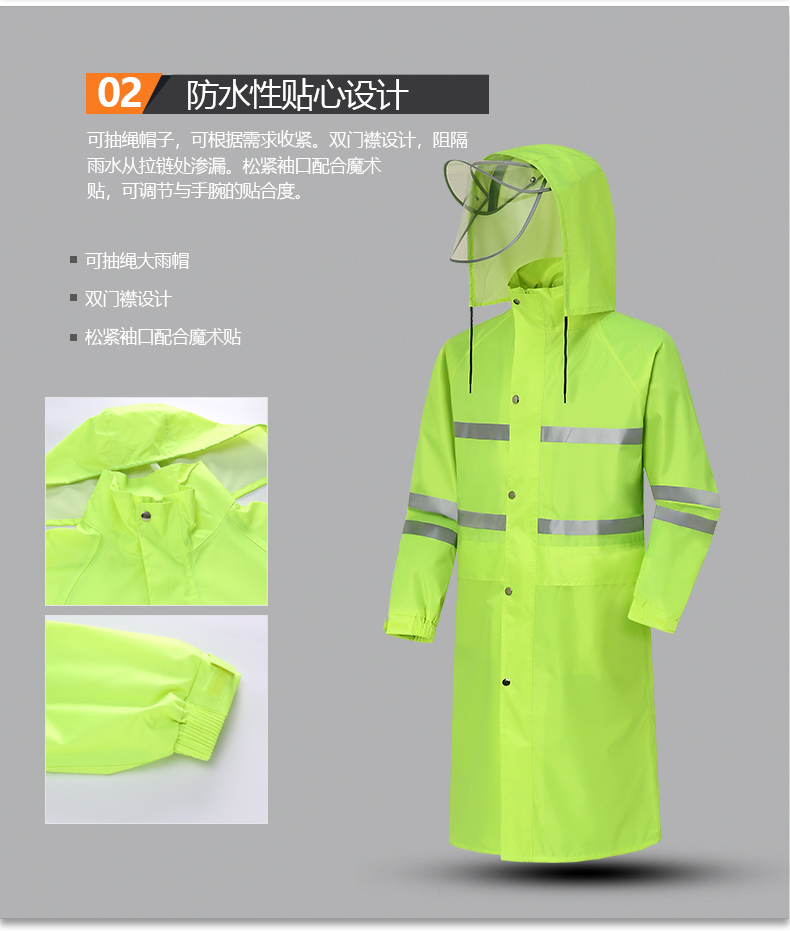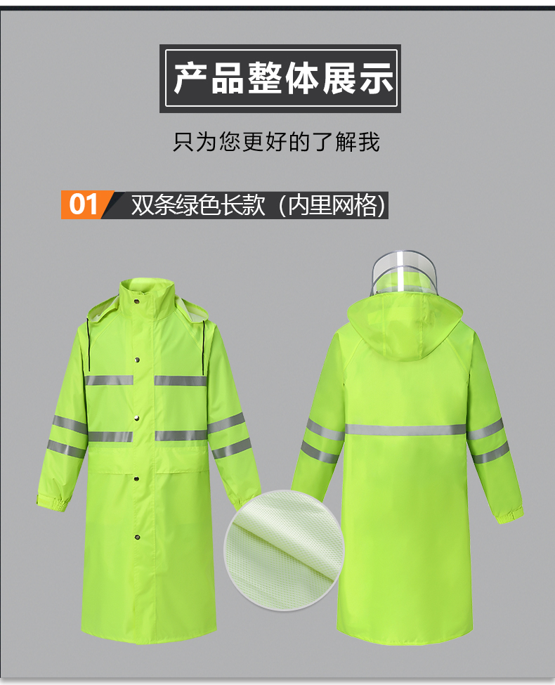 艾逊订货号:J1026531 原始型号:谋福(CNMF)270 长款雨衣外套( 荧光绿长风衣加黑色裤子) 品牌:CNMF/谋福 品牌所属地:国产