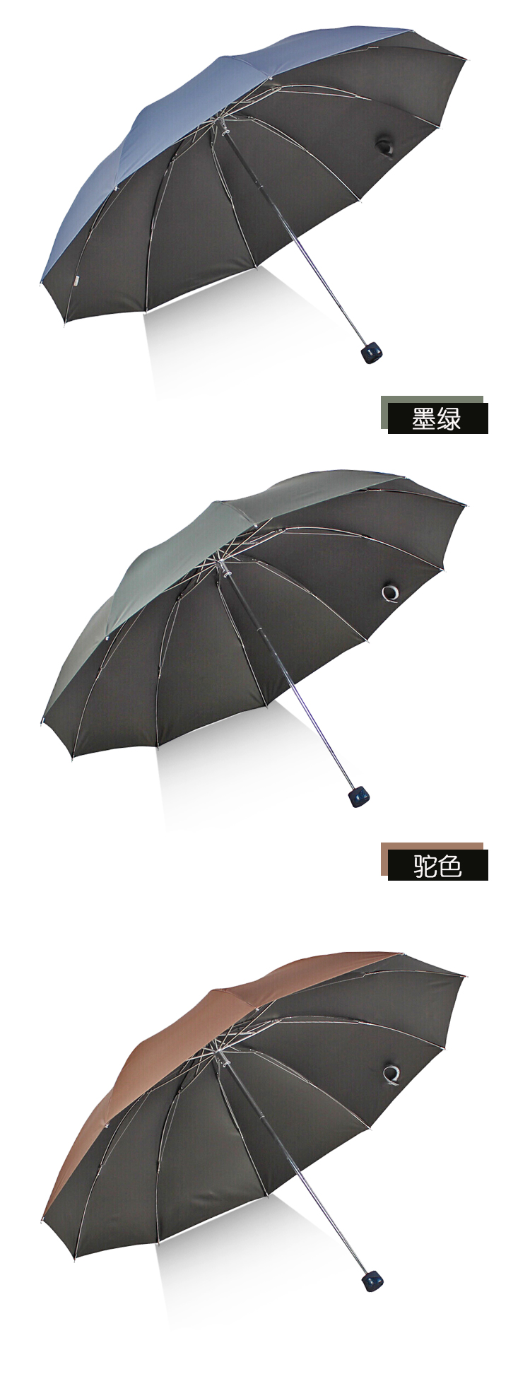 艾逊订货号:K1026355 原始型号:天堂伞 三折叠晴雨伞61cm*10骨太阳伞 33188 品牌:天堂 品牌所属地:国产
