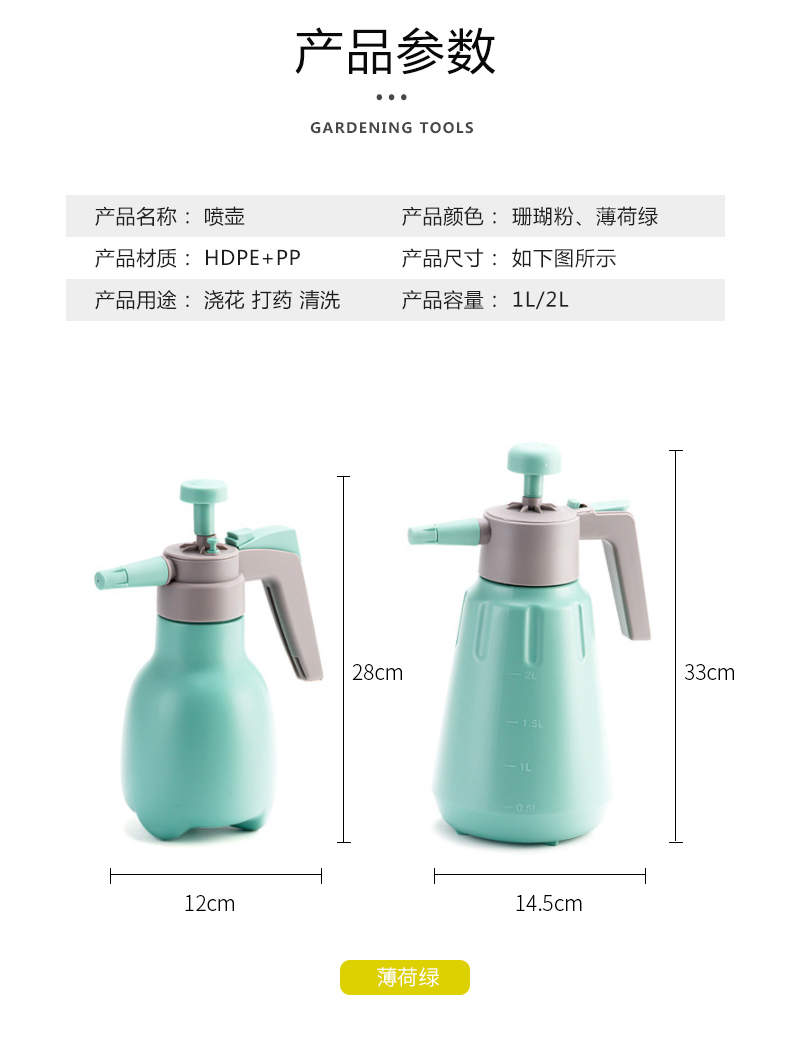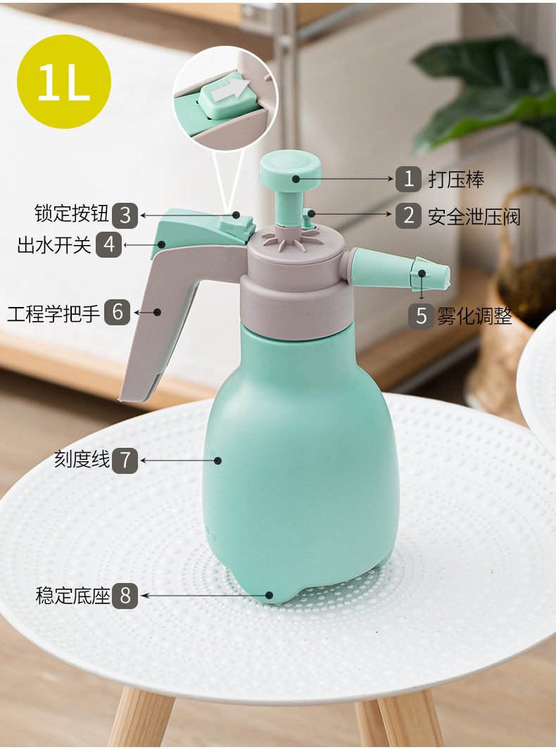 艾逊订货号:K1026366 原始型号:VMP 喷壶消毒薄荷绿 LZ7913 1L按压式 品牌:VMP 品牌所属地:国产