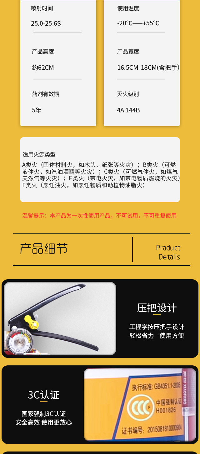 海天 手提式干粉灭火器MFZ/ABC3 3KG 4个/箱 |