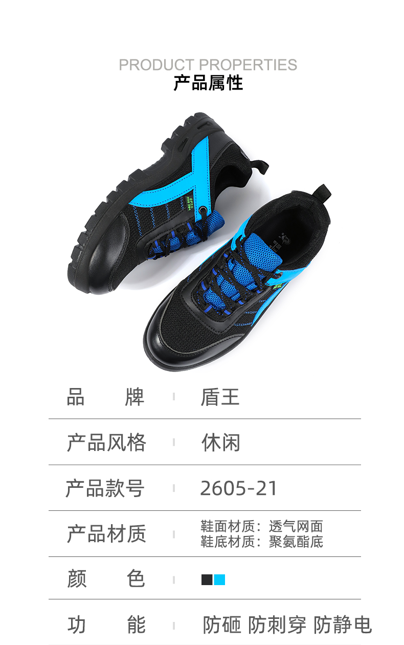 盾王的安全鞋盾王防砸防刺防静电安全鞋2605-21-35