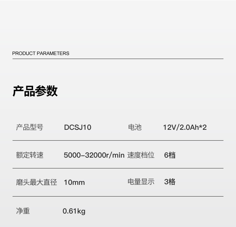 艾逊订货号:D1042622 原始型号:电磨头 DCSJ10 12V 品牌:other/其他 品牌所属地:国产