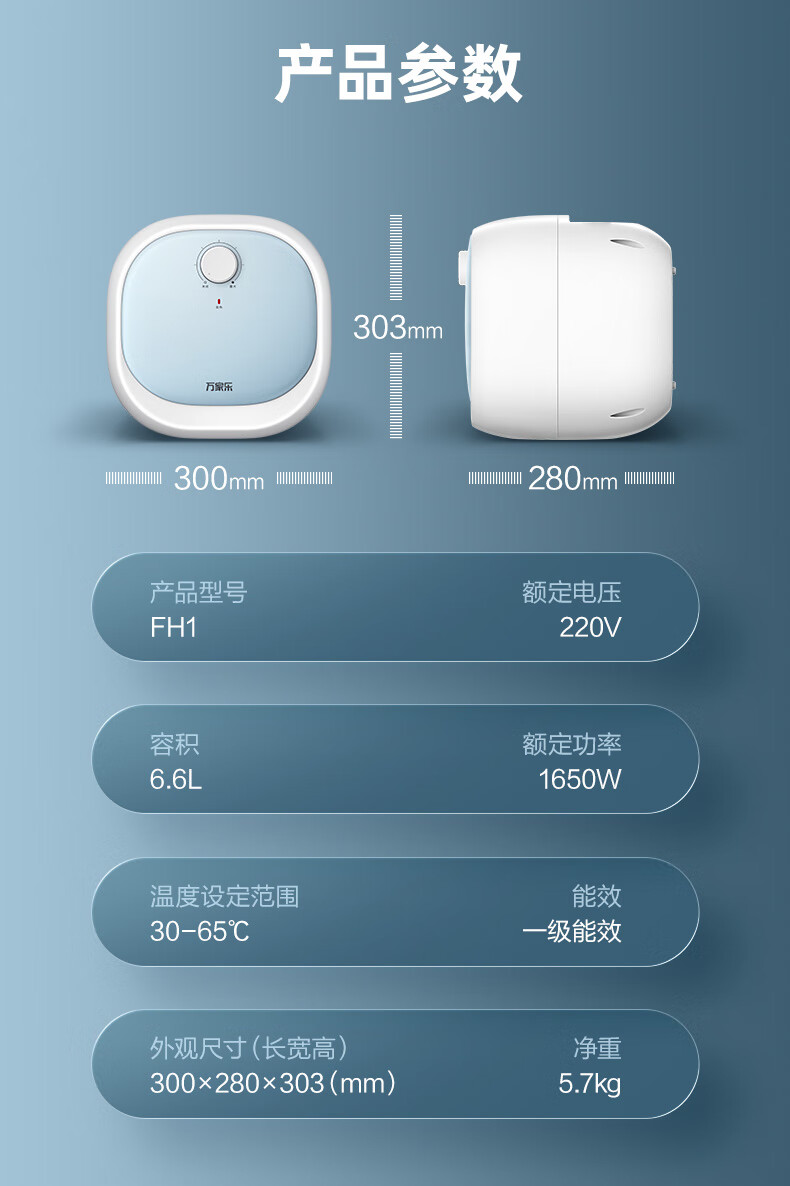 艾逊订货号:K1026546 原始型号:小厨宝电加热器 D6.6-FH1(S) 品牌:Macro/万家乐 品牌所属地:国产