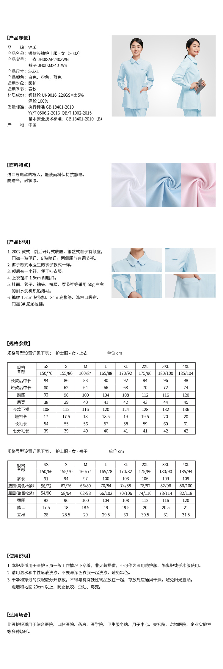 锦禾的工作防护服锦禾上衣JH0ISAP2403WB、裤子JH0IKM2401WB--短款长袖护士服-女(2002)