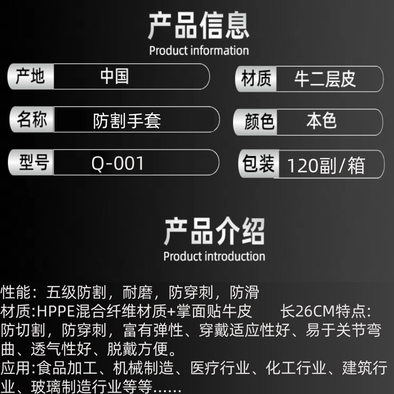 艾逊订货号:J1027898 原始型号:Q-001 灰色.长25CM均码 .F级防割手套.防烫、耐磨、防割、防穿刺、防开线 品牌:威仕盾 品牌所属地:中国