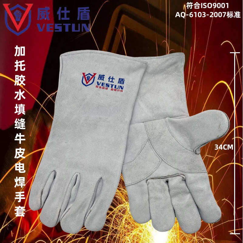 威仕盾的焊接手套威仕盾J-1659牛二层胶水填缝双层加托电焊手套