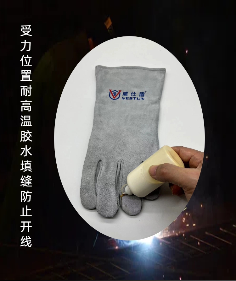 威仕盾的焊接手套牛二层胶水填缝双层电焊手套