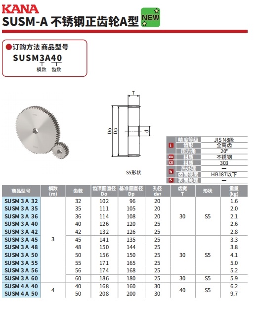 KANA的齿轮.齿条KANASUSM4A50