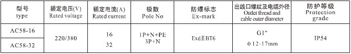艾逊订货号:H1000058 原始型号:AC58-16 品牌:中兴防爆 品牌所属地:中国