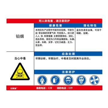 安赛瑞 职业病危害告知卡-铅烟,ABS板,600×450mm,14623