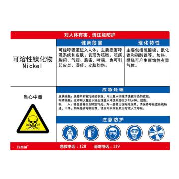 安赛瑞 职业病危害告知卡-可溶性镍化物,ABS板,600×450mm,14624