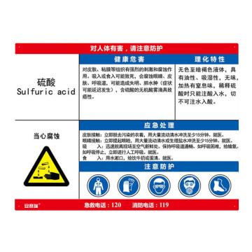 安赛瑞 职业病危害告知卡-硫酸,ABS板,600×450mm,14625