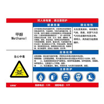 安赛瑞 职业病危害告知卡-甲醇,ABS板,600×450mm,14626