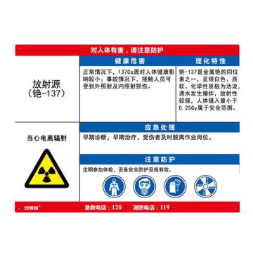 安赛瑞 职业病危害告知卡-放射源 铯-137,ABS板,600×450mm,14627