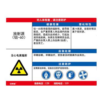 安赛瑞 职业病危害告知卡-放射源 钴-60,ABS板,600×450mm,14628