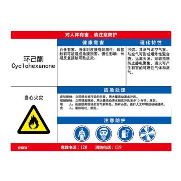 安赛瑞 职业病危害告知卡-环己酮,ABS板,600×450mm,14629