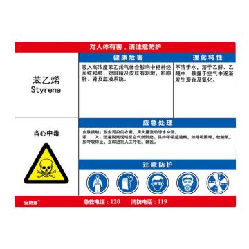 安赛瑞 职业病危害告知卡-苯乙烯,ABS板,600×450mm,14631