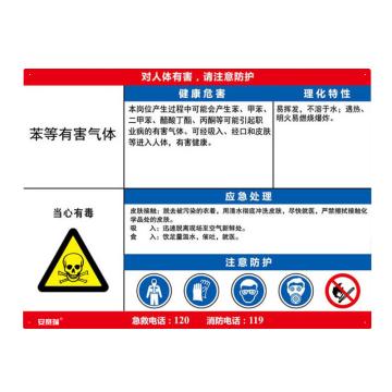 安赛瑞 职业病危害告知卡-苯等有毒气体,ABS板,600×450mm,14632