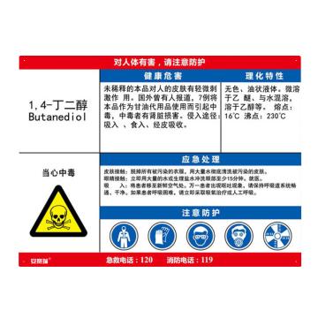安赛瑞 职业病危害告知卡-1 4-丁二醇,ABS板,600×450mm,14634