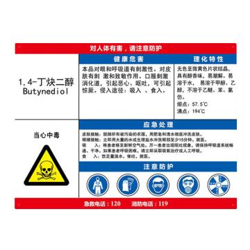 安赛瑞 职业病危害告知卡-1 4-丁炔二醇,ABS板,600×450mm,14635