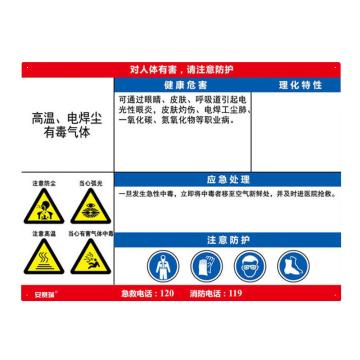 安赛瑞 职业病危害告知卡-高温、电焊尘、有毒气体,ABS板,600×450mm,14636