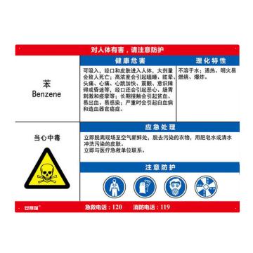 安赛瑞 职业病危害告知卡-苯,ABS板,600×450mm,14637