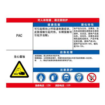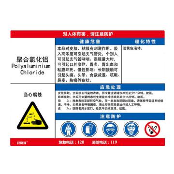 安赛瑞 职业病危害告知卡-聚合氯化铝,ABS板,600×450mm,14641