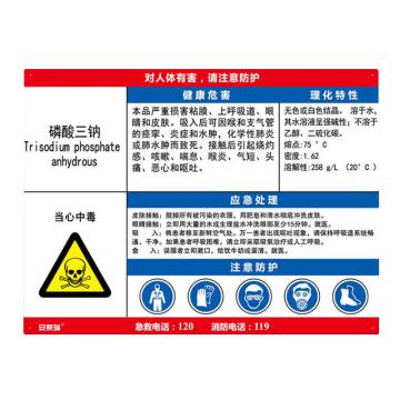 安赛瑞 职业病危害告知卡-磷酸三钠,ABS板,600×450mm,14642