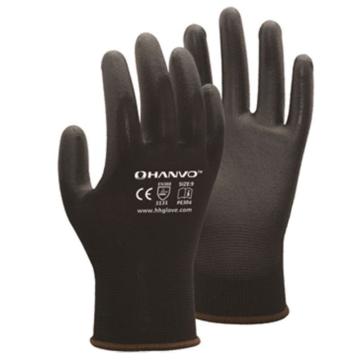 恒辉 PU涂层手套,PE802-9,18针染色尼龙黑掌浸