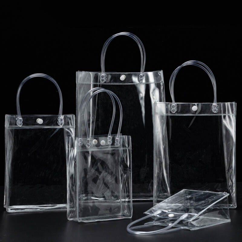 庄太太【35*30*13cm】PVC塑料透明手提袋礼品袋50个小礼物包装袋手拎袋子ZTT-9324B