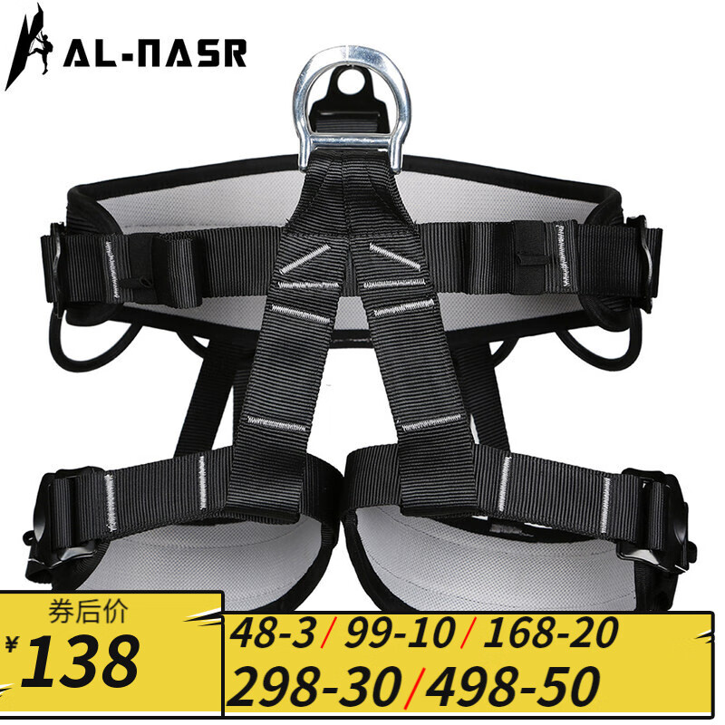 AL-NASR 舒适型攀登安全带户外攀岩装备索降速降半身式护腰安全带 黑色