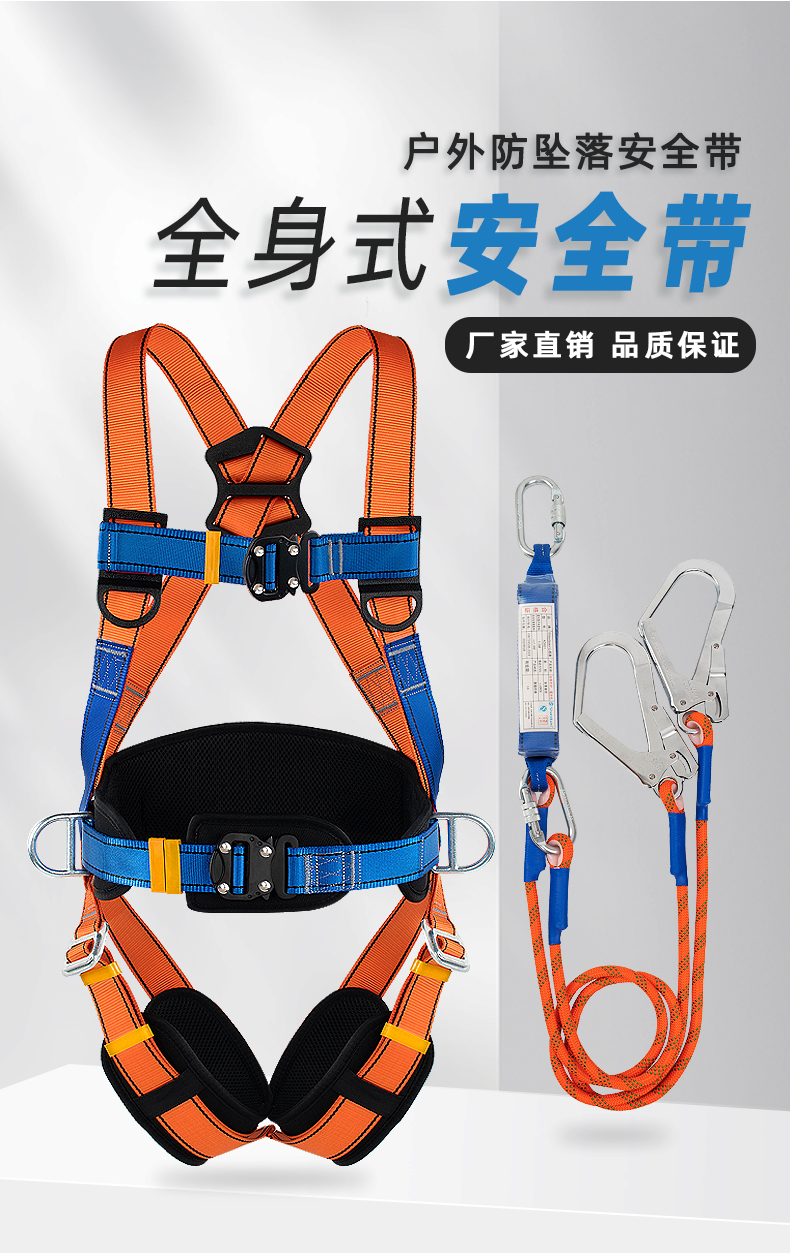 广佳全身五点式高空作业安全带 弹力双大钩带缓冲