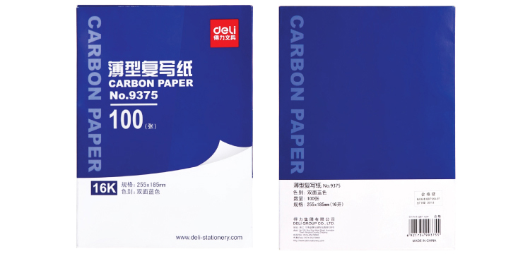 艾逊订货号:120954 原始型号:100张 品牌:deli/得力 品牌所属地:复写纸